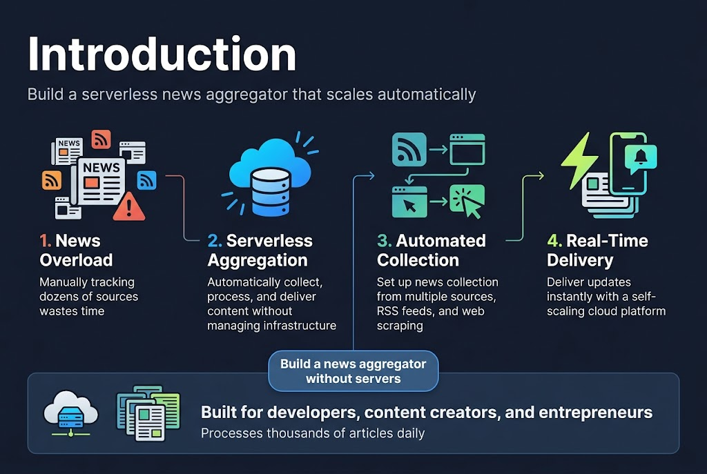 This guide is perfect for developers, content creators, and entrepreneurs who want to build a news aggregator without servers while keeping costs low and scalability high. You’ll learn to create a real-time news aggregation system that runs itself and scales automatically.