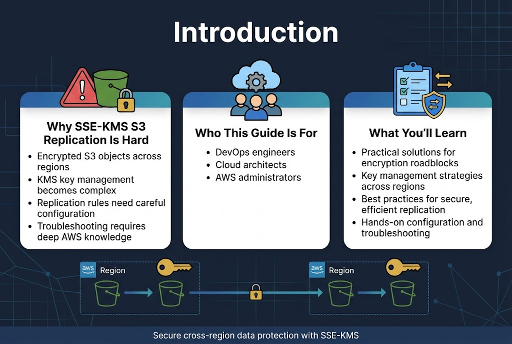 This guide is for DevOps engineers, cloud architects, and AWS administrators who need to implement S3 SSE-KMS replication while maintaining security and performance. You’ll learn practical solutions to overcome encryption-related replication roadblocks and establish reliable cross-region data protection.
